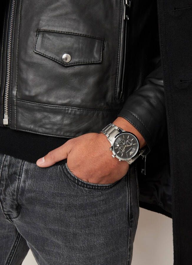 Heren chronograaf van Emporio Armani uit de Brandfield collectie, uitgevoerd met een RVS polsband. Het model is voorzien van een horlogekast van RVS, mineraalglas en quartz uurwerk.