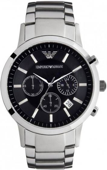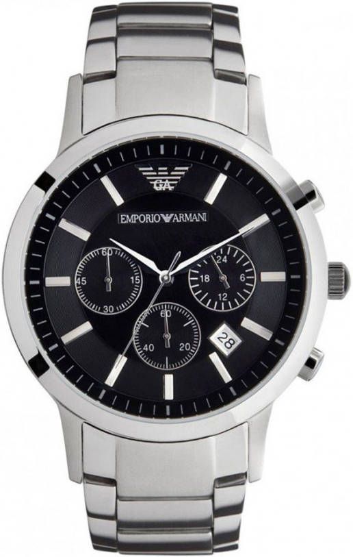 Fashion komt samen met functionaliteit in dit chronograaf horloge van Emporio Armani- De RVS kast heeft een zwarte, simpele wijzerplaat met een drieogige chronograaf en datumaanduiding voor extra functionaliteit- de RVS horlogeband geeft het horloge een stoere, robuuste finishing touch- Het horloge wordt geleverd in een luxe bewaarverpakking- Model: AR2434.